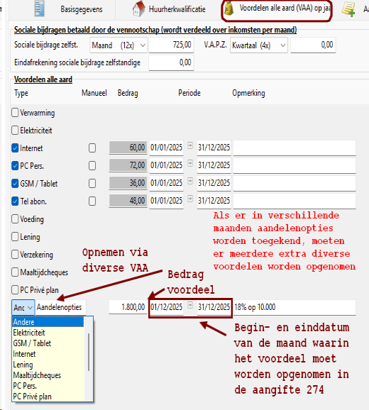 Indien de aandelenopties via de aanvullende gegevens werden aangegeven, moet het bedrag dat via het voordeel alle aard (VAA) werd opgenomen opnieuw in mindering worden gebracht van het VAA.